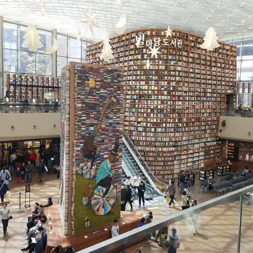 | คำอธิบาย : ห้องสมุด Starfield Library เป็นห้องสมุดในห้างสรรพสินค้า COEX Mall ห้องสมุดแห่งนี้เป็นห้องสมุดเปิดและไม่เสียค่าใช้จ่ายในการเข้าใช้บริการ |
