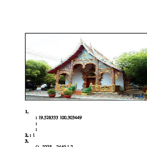 | คำอธิบาย : วัดพระธาตุสบแวน วัดพระธาตุสบแวน ตั้งอยู่ในตำบลหย่วน อำเภอเชียงคำ จังหวัดพะเยา ห่างจากที่ว่าการอำเภอเชียงคำประมาณ ๔ กิโลเมตร เป็นวัดเก่าแก่แห่งหนึ่งของอำเภอเชียงคำ มีพระบรมธาตุเจดีย์บรรจุพระเกศาธาตุและพระบรมธาตุริมฝีปากล่างขององค์สมเด็จพระสัมมาสัมพุทธเจ้าพระโคตมพุทธเจ้า (พระพุทธเจ้าองค์ปัจจุบัน) วัดพระธาตุสบแวน สังกัดคณะสงฆ์มหานิกาย สร้างเมื่อ พ.ศ.2223 ได้รับพระราชทานวิสุงคามสีมา พ.ศ. 2440 เป็นศูนย์รวมจิตใจชองชาวไทลื้อบ้านธาตุ หมู่ที่ 1,2 |