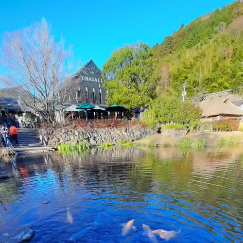 | คำอธิบาย : Kinrin Lake ทะเลสาบที่เป็นสัญลักษณ์ของยุฟุอินพร้อมด้วยทัศนียภาพที่สะท้อนบนผิวน้ำทะเลสาบ มีออนเซ็นที่เดือดขึ้นมาจากก้นทะเลสาบ |