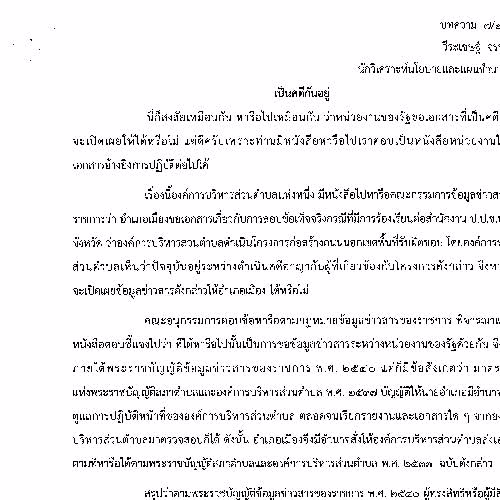 คำอธิบาย : บทความ ความรู้เกี่ยวกับพระราชบัญญัติข่าวสารของราชการ พ.ศ.2540 เปิดเผยเป็นหลัก ปกปิดเป็นข้อยกเว้น |