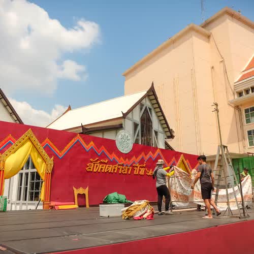 | คำอธิบาย : การตั้งโรงแสดงหุ่นกระบอก ของคณะหุ่นครูรัตน์ ในโครงการดนตรีสำหรับประชาชน ที่จัด ณ สังคีตศาลา เวทีกลางแจ้ง พิพิธภัณฑสถานแห่งชาติ พระนคร เมื่อวันที่ 16 ก.พ. 2562 |