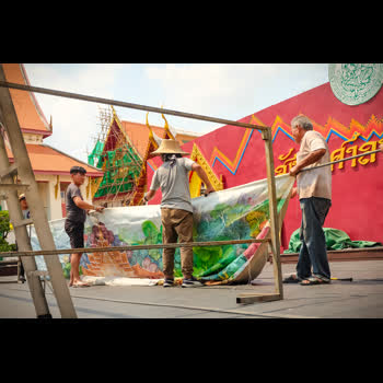 | คำอธิบาย : การตั้งโรงแสดงหุ่นกระบอก ของคณะหุ่นครูรัตน์ ในโครงการดนตรีสำหรับประชาชน ที่จัด ณ สังคีตศาลา เวทีกลางแจ้ง พิพิธภัณฑสถานแห่งชาติ พระนคร เมื่อวันที่ 16 ก.พ. 2562 |