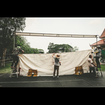 | คำอธิบาย : การตั้งโรงแสดงหุ่นกระบอก ของคณะหุ่นครูรัตน์ ในโครงการดนตรีสำหรับประชาชน ที่จัด ณ สังคีตศาลา เวทีกลางแจ้ง พิพิธภัณฑสถานแห่งชาติ พระนคร เมื่อวันที่ 16 ก.พ. 2562 |