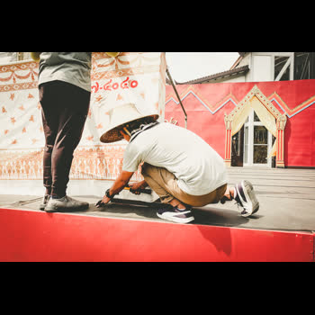 | คำอธิบาย : การตั้งโรงแสดงหุ่นกระบอก ของคณะหุ่นครูรัตน์ ในโครงการดนตรีสำหรับประชาชน ที่จัด ณ สังคีตศาลา เวทีกลางแจ้ง พิพิธภัณฑสถานแห่งชาติ พระนคร เมื่อวันที่ 16 ก.พ. 2562 |