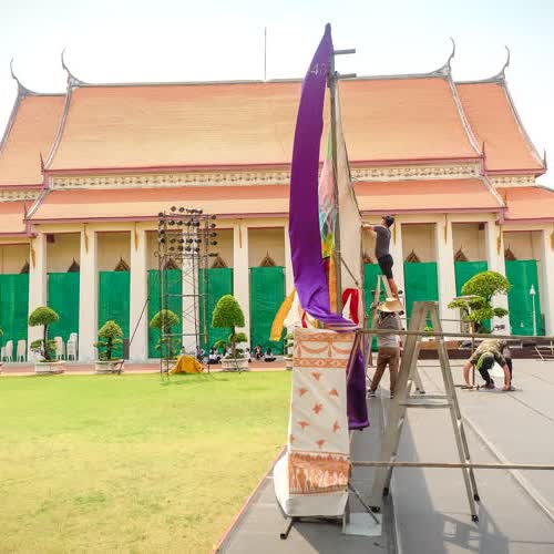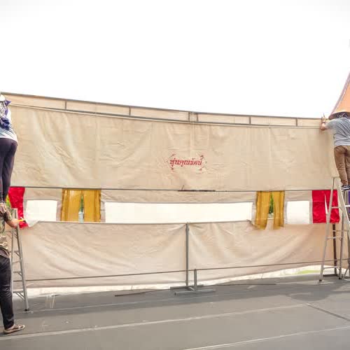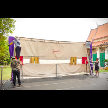 | คำอธิบาย : การตั้งโรงแสดงหุ่นกระบอก ของคณะหุ่นครูรัตน์ ในโครงการดนตรีสำหรับประชาชน ที่จัด ณ สังคีตศาลา เวทีกลางแจ้ง พิพิธภัณฑสถานแห่งชาติ พระนคร เมื่อวันที่ 16 ก.พ. 2562 |