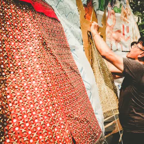 | คำอธิบาย : การตั้งโรงแสดงหุ่นกระบอก ของคณะหุ่นครูรัตน์ ในโครงการดนตรีสำหรับประชาชน ที่จัด ณ สังคีตศาลา เวทีกลางแจ้ง พิพิธภัณฑสถานแห่งชาติ พระนคร เมื่อวันที่ 16 ก.พ. 2562 |