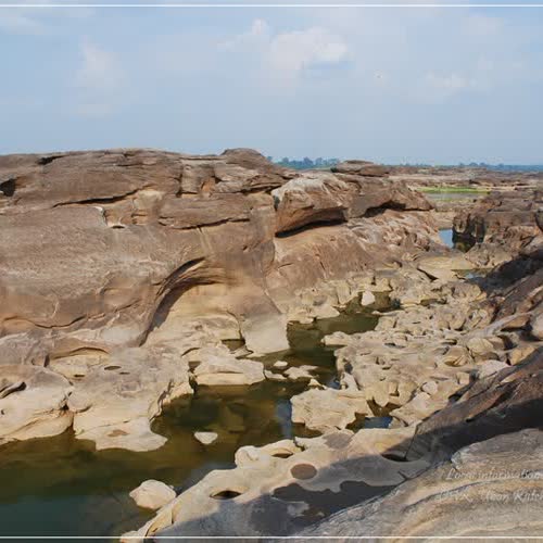 | คำอธิบาย : สามพันโบก อำเภอโพธิ์ไทร จังหวัดอุบลราชธานี เกิดจากการที่น้ำในลำน้ำโขงกัดเซาะแผ่นหินราบมาหลายพันปี เกิดเป็นหลุมหรือแอ่งที่มีขนาดและรูปร่างแตกต่างกันออกไป คนในพื้นที่จะเรียกหลุมหรือแอ่งนี้ว่า โบก ซึ่งบริเวณดังกล่าวมีหลุมในลักษณะนี้มากมายเป็นพัน ๆ จึงเป็นที่มาของชื่อว่า สามพันโบก หินบางก้อนถูกกัดกร่อนคล้ายงานแกะสลักรูปสัตว์ รูปหัวใจ รูปมิกกี้เมาส์ ตามแต่จินตนาการของผู้ชม |
