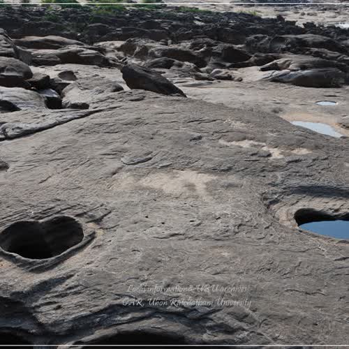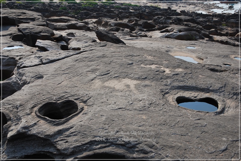| คำอธิบาย : โบกหัวใจคู่ เป็นโบกหรือแอ่งน้ำ 2 แอ่ง ที่มีลักษณะคล้ายรูปหัวใจ เกิดเรียงคู่กันที่สามพันโบก อำเภอโพธิ์ไทร จังหวัดอุบลราชธานี การตามหาและจินตนาการรูปร่างของโบกต่าง ๆ นั้นเป็นความสนุกสนานเพลิดเพลินของการท่องเที่ยวสามพันโบกอีกอย่างหนึ่ง |
