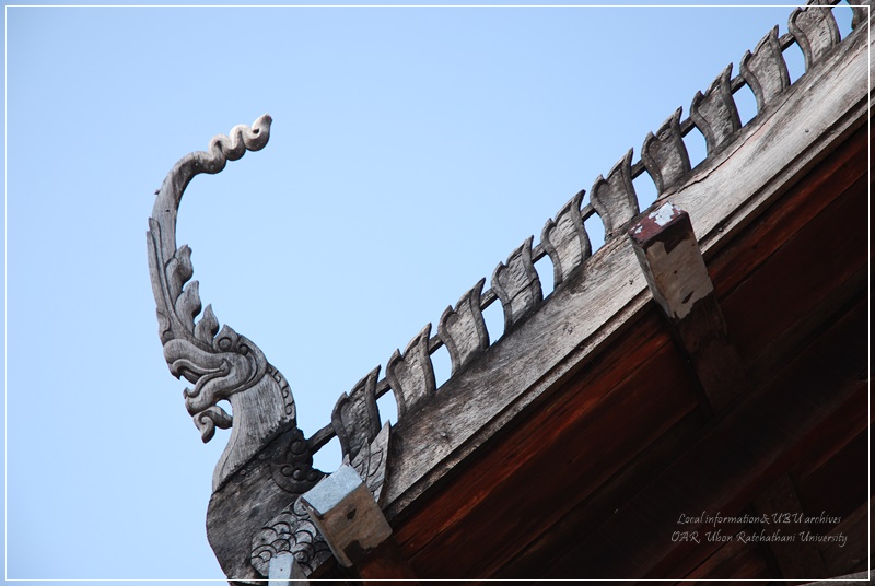 | คำสำคัญ : สถาปัตยกรรมท้องถิ่นอีสาน, วัดแจ้ง, สิม, อุโบสถ, ใบระกา, งานไม้แกะสลัก, อุบลราชธานี, หางหงส์, ศิลปกรรมท้องถิ่นอีสาน |