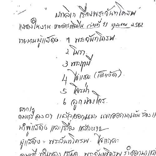 | คำอธิบาย : บทลิเกเรื่อง พระจันทโครพ ประพันธ์คำร้องและเรียบเรียงโดย ครูวิโรจน์ หลานหอมหวล |