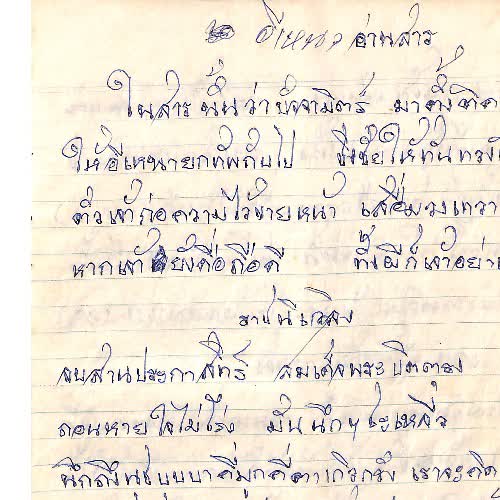 | คำอธิบาย : บทลิเกเรื่อง อิเหนา ประพันธ์คำร้องและเรียบเรียงโดย ครูหอมหวล (ลายมือครูหอมหวล) มอบให้โดยครูวิโรจน์ หลานหอมหวล |