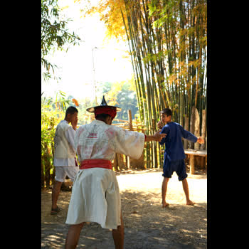 | คำสำคัญ : แพร่, ท่ามือเปล่าประกอบเท้า, ท่าประกอบอาวุธ, ล้านนา, ภาคเหนือ, ศิลปะป้องกันตัว, ศิลปะนาฏกรรม, กลองไชยมงคล, เมืองลอง, ย่ำขุ่ม, ฟ้อนเจิง, ไก่ตีปีกแม่ฮ้อยเดือยคำ, กลองยาว, เจิงแพร่, ท่ามือ, เจิง, ล้านนาไทเก๊ก |
