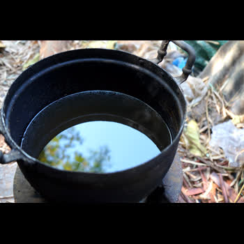 น้ำต้มดัดกะลาอุปกรณ์พิเศษของซอสามสาย เครื่องดนตรีไทย ได้รับใบอนุญาตภายใต้ ให้เผยแพร่-โดยต้องระบุที่มาแต่ห้ามดัดแปลงและห้ามใช้เพื่อการค้า 3.0 Thailand.