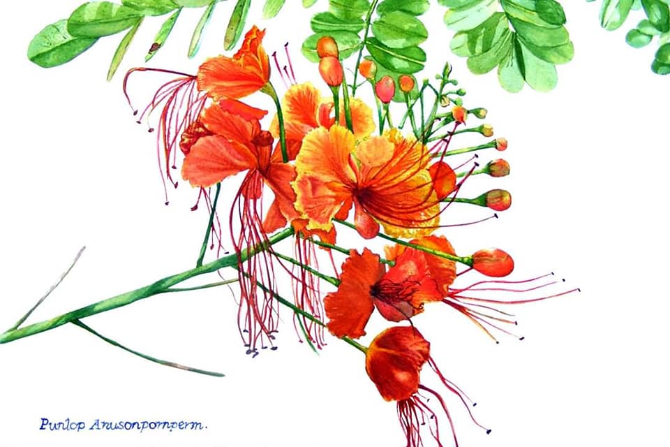 | คำสำคัญ : ดอกหางนกยูงไทย, ภาพวาดสีน้ำมัน, หางนกยูงไทย |