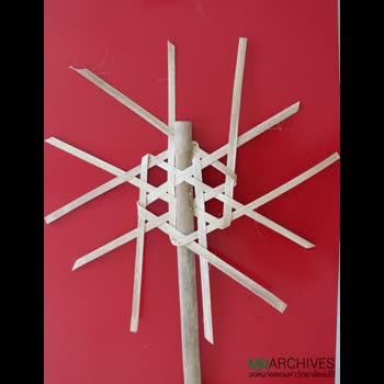 | คำอธิบาย : “ต๋าแหลว” ในภาษาเหนือหมายถึง ตาเหยี่ยว เป็นเครื่องหมายทางพิธีกรรมตามความเชื่อของคนล้านนา เพื่อแสดงอาณาเขตที่มีเจ้าของ เขตหวงห้าม และยังเชื่อว่าจะสามารถปกป้องพื้นที่นั้นให้คลาดแคล้วจากภัยพิบัติทั้งปวง และจะนำมาใช้ในพิธีแฮกนาด้วย |