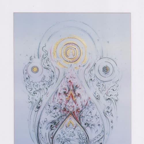 | คำสำคัญ : ภาพวาดจุติ, งานศิลปะ, จิตรกรรม, ภาพวาดเส้นปากกาและผสมทอง, งานศิลป์, ภาพวาดเทคนิคสีผสม |
