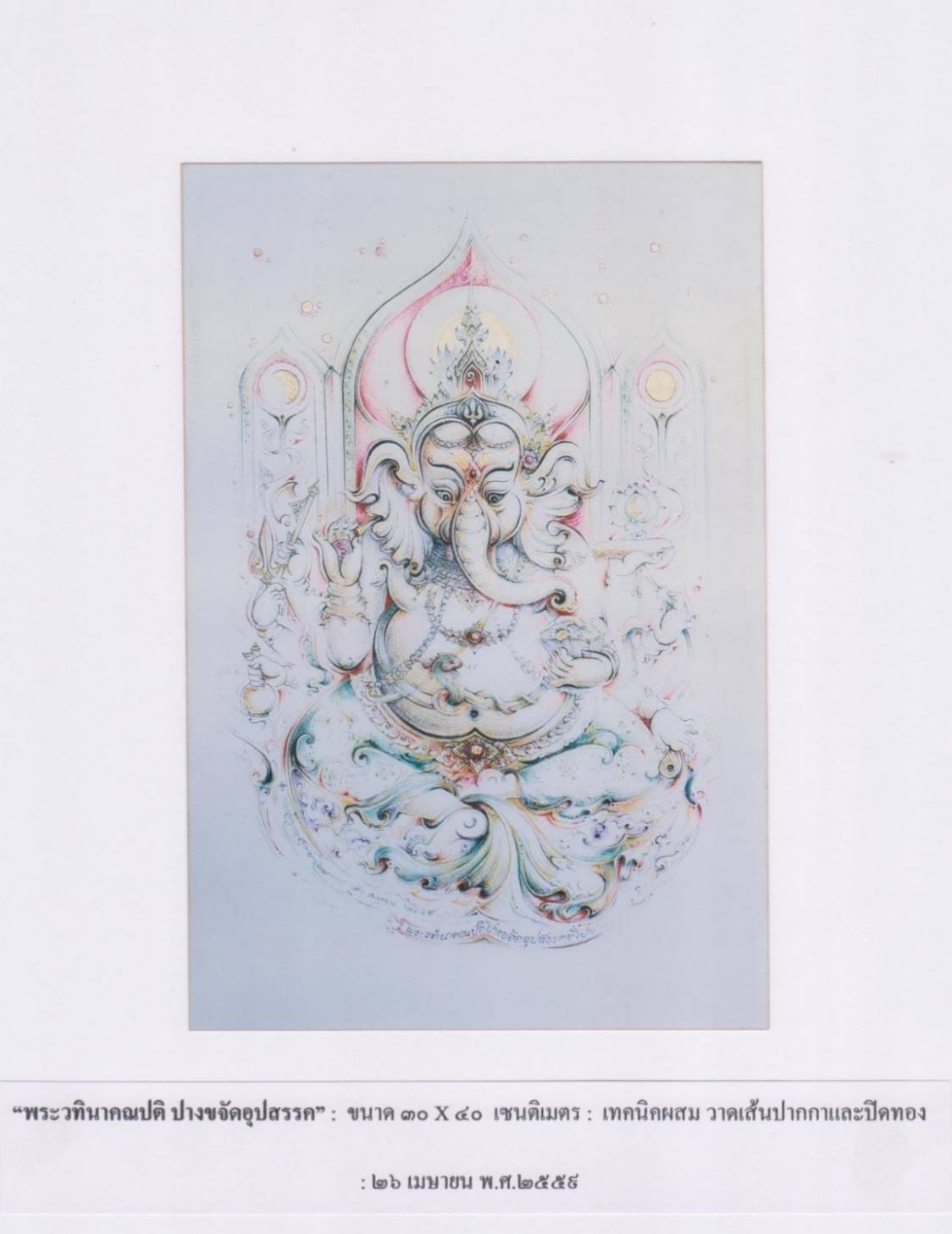 | คำสำคัญ : งานจิตรกรรม, งานศิลป์, พระวทินาคณปติ, ภาพวาด, พระพิฆเนศ, ศิลปะ |