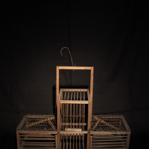 คำอธิบาย : กรงนกปิ๊ดจะริว (นกปรอด) ทำจากไม้ประกอบเป็นรูปสี่เหลี่ยม 3 ชิ้น ชิ้นกลาง เป็นกรงสำหรับใส่นกเพื่อใช้ในการล่อ ส่วนอีก 2 ชิ้นด้านขาง สำหรับดักจับนก ตัวกรงทำด้วยไม้เหลากลึงให้เป็นแท่งขนาดเล็ก ทำเป็นซี่กรง ชิ้นกลางมีประตูปิดเปิด ส่วนชิ้นด้านข้าง มีตาข่ายเชือกมัดติดกับกับเหล็กที่ดัดเป็นรูปสี่เหลี่ยมเท่ากรง มีกลไกไม้ที่สามารถเปิดตาข่ายได้ ใช้สำหรับล่อดักจับนกปิ๊ดจะริว (นกปรอด) |