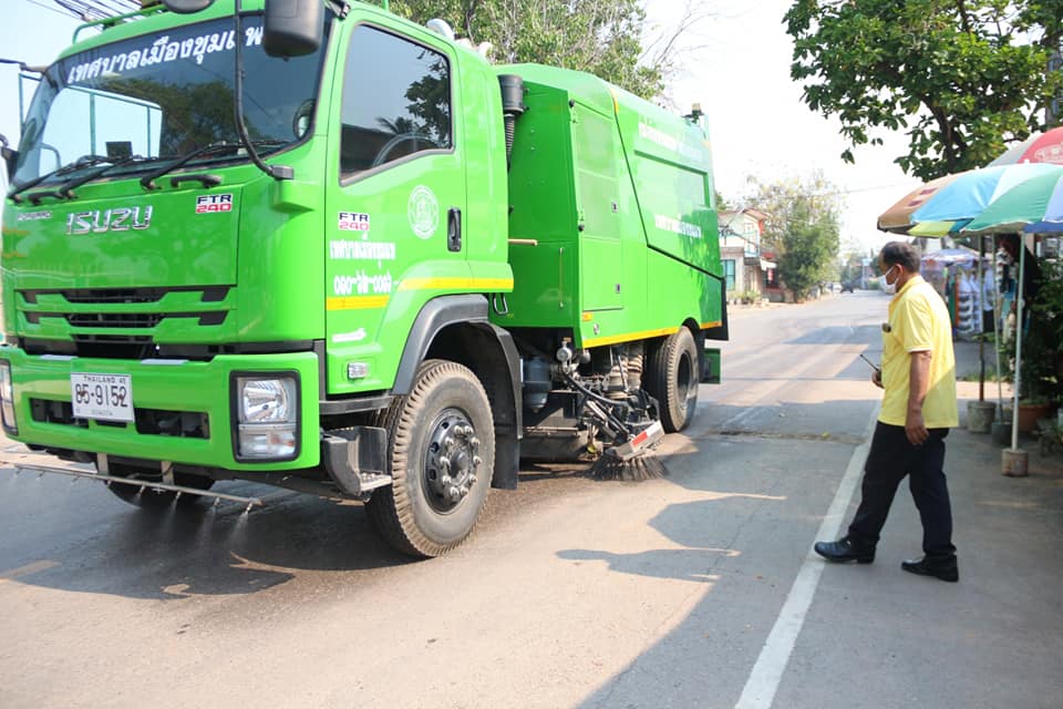 | คำอธิบาย : การฉีดน้ำล้างทำความสะอาดถนน เพื่อหวังลดปัญหาฝุ่นละอองขนาดเล็ก PM 2.5 ในเขตเทศบาลเมืองชุมแพ จ.ขอนแก่น |