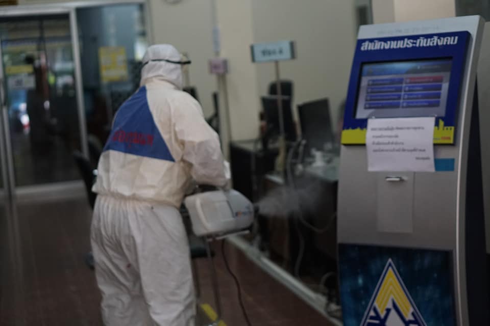 | คำอธิบาย : การเข้าฉีดพ่นน้ำยาฆ่าเชื้อเพื่อป้องกันการแพร่ระบาดของ Coronavirus (COVID-19) ในพื้นที่สำนักงานประกันสังคมจังหวัดขอนแก่น สาขาชุมแพ เมื่อวันที่ 23 มีนาคม 2563 |