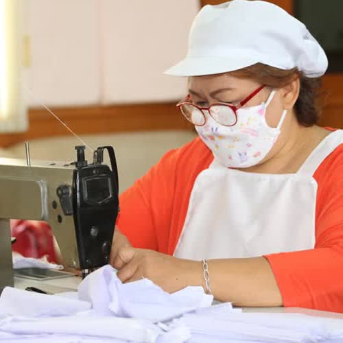 การผลิตหน้ากากผ้า ได้รับใบอนุญาตภายใต้ ให้เผยแพร่-ดัดแปลง-โดยต้องระบุที่มาแต่ห้ามใช้เพื่อการค้า 3.0 Thailand.