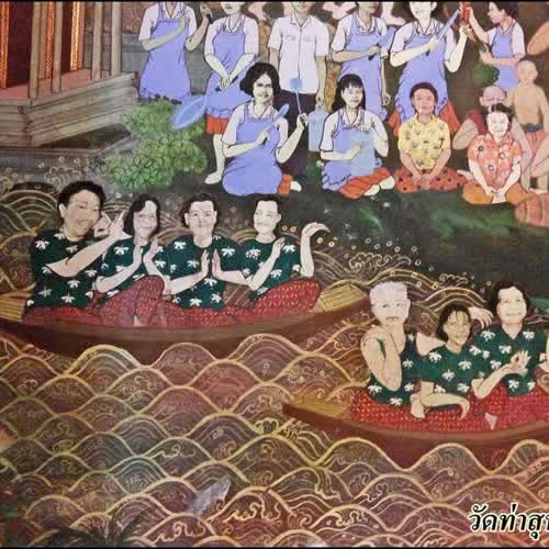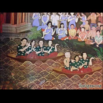 | คำอธิบาย : ภาพการเล่นเพลงเรือ ในภาพจิตรกรรมฝาผนัง ภายในพระอุโบสถวัดท่าสุทธาวาส |