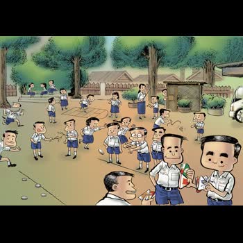 | คำอธิบาย : เขียนเรื่องนี้ใกล้กับวันเด็กพอดีเลย ถ้าพูดถึงเด็กผมก็มักคิดถึงหลายๆเรื่อง ที่แวบมาก่อนเพื่อนก็คือ สนามเด็กเล่น\n\nโรงเรียนผมคือ #โรงเรียนวัดพลับพลาศิริวิทยา เป็นโรงเรียนวัดเล็กๆอยู่หลัง #โรงเรียนสตรีนนทบุรี เป็นโรงเรียนวัดที่ล้อมรอบด้วยสุเหร่า คือ นักเรียนนับถือทั้งศาสนาพุทธและอิสลาม ปนกัน โดยมีครูใหญ่นับถือศาสนาคริสต์ ครบถ้วนทุกศาสนา\n\nมีเรื่องให้คิดถึงมากมายที่โรงเรียนนี้ที่ปัจจุบันไม่มีอยู่แล้ว แต่ก่อนผมจะแชเชือนไปมาก ขอกลับมาเรื่องเล่นดีกว่า\n\nเด็กนักเรียนสมัยนั้นยังไม่มีคอมพิวเตอร์ ไม่มีมือถือ การเล่นของรุ่นเราจึงออกไปทางใช้เรี่ยวแรงกันมากกว่า\n\nและเวลาเด็กเล่น เราก็เล่นกันอย่างจริงจังสุดๆ สนุกเต็มที่ หัวเราะและร้องไห้กันอย่างไม่ต้องอั้น\n\nการละเล่นหลักๆที่เล่นกัน ถ้าของเหล่าเด็กผู้หญิงก็คือ กระโดดหนังยาง พวกหล่อนก็เล่นกันอย่างทุ่มเท ถึงขนาดถอดรองเท้าหรือถุงเท้าโดดกันเลยทีเดียว ไล่ทีละอี (ขออภัยที่ไม่สุภาพ) ไป อย่าง อีตาตุ่ม...อีแข้ง..อีเข่า..อีตะโพก...อีเอว...อีอก...อีคอ...อีหู...อีหัว และ อีชู นอกจากทุ่มเทสุดๆแล้ว พวกหล่อนยังเก่งเสียจนพวกเราผู้ชายยังยอมแพ้\n\nเด็กกลุ่มที่ห้าวหน่อยจะเล่น ‘โบราณเรียกชื่อ’ โดยจะใช้ลูกปิงปองนี่แหละ คนโยนคนแรกก็จะโยนลูกให้สูงที่สุด แล้วตะโกนเรียกชื่อเพื่อน\n\nคนที่ถูกเรียกต้องรีบวิ่งมารับลูกปิงปองให้ได้ก่อนตกถึงพื้น ถ้ารับได้ก็โยนและเรียกชื่อคนอื่นต่อไป\n\nถ้ารับไม่ได้ต้องเอาลูกปิงปองนั้น ปาอัดใส่ใครก็ได้ แล้วคนที่โดนปาก็จะเป็นคนเริ่มใหม่\n\nเป็นการเล่นที่ตื่นเต้นมากและก็เจ็บๆแสบๆคันๆด้วยถ้าโดนลูกปิงปองปาใส่ ไม่รู้ทำไมถึงเรียก ‘โบราณเรียกชื่อ’ เหมือนกัน\n\nที่ฮิตกว่านั้นก็คือ การทอยเส้น ด้วย‘ตุ๊กตุ่น’ ที่ไม่เห็นเด็กสมัยนี้เล่นกันแล้ว\n\n#ตุ๊กตุ่น ก็คือ หุ่นพลาสติกตัวเล็กๆทำเป็นรูปยอดมนุษย์ เช่น ไอ้มดแดง หรือ อุลตร้าแมน ที่ขายตามร้านชำ หรือร้านของเล่นหน้าโรงเรียน มักจะมียี่ห้อเดียวคือยี่ห้อที่ปั๊มตรามดแล้วมีถาษาญี่ปุ่นยึกยือกำกับไว้ ถือเป็นสมบัติอันล้ำค่าของเด็กผู้ชายสมัยนั้นทีเดียว ตุ๊กตุ่นจะมีสองแบบคือ ทำจากพลาสติกสีโปร่งแสงเรียก ตุ๊กตุ่นใส กับแบบทึบแสงที่เราเรียกว่า ตุ๊กตุ่นแข็ง\n\nเวลาใช้ทอยเส้น เราจะใช้ตุ๊กตุ่นใส เพราะว่ากันว่า ‘หนึบดี’ หนึบก็คือได้น้ำหนัก พอปาไปแล้วหยุดอยู่กับที่ ไม่กระเด้งกระดอนไปจากเส้นเป้าหมาย บางคนอยากให้หนึบมากขึ้น ก็จะใช้ลวดพันแขนขาตุ๊กตุ่นไว้อีกด้วย\n\nการทอยเส้น เราก็จะขีดเส้นสองเส้น 