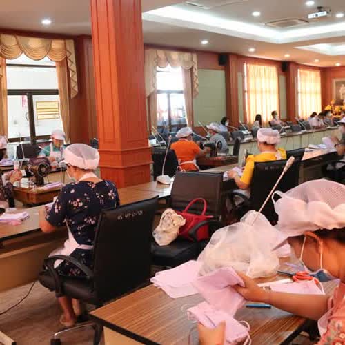 การผลิตหน้ากากผ้า ได้รับใบอนุญาตภายใต้ ให้เผยแพร่-ดัดแปลง-โดยต้องระบุที่มาแต่ห้ามใช้เพื่อการค้า 3.0 Thailand.