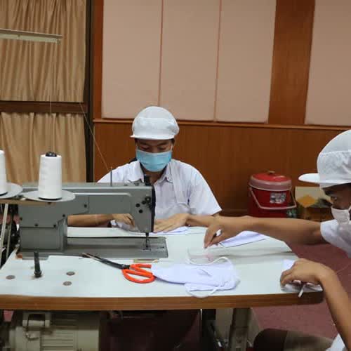 การผลิตหน้ากากผ้า ได้รับใบอนุญาตภายใต้ ให้เผยแพร่-ดัดแปลง-โดยต้องระบุที่มาแต่ห้ามใช้เพื่อการค้า 3.0 Thailand.