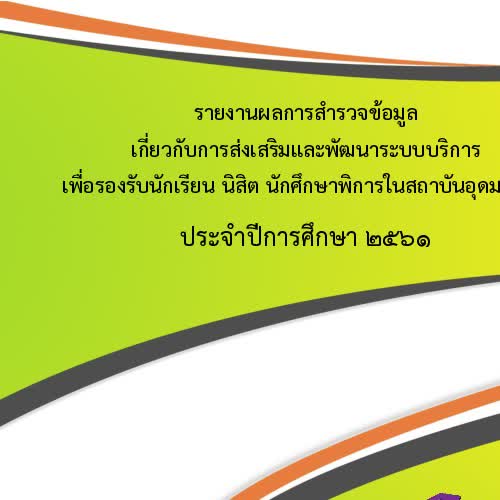 | ชื่อเรื่อง : รายงานผลการสำรวจข้อมูลนักศึกษาพิการ ปีการศึกษา 2561 |