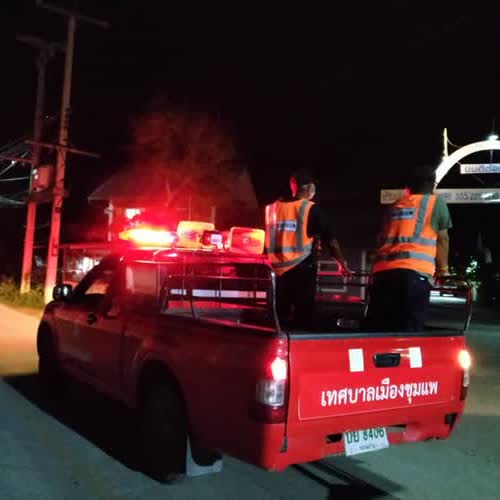 | คำอธิบาย : ค่ำวันจันทร์ที่ 20 เมษายน 2563 จ่าสิบเอกนิคม อภัย หัวหน้าฝ่ายปกครองเทศบาลเมืองชุมแพ ได้รับมอบหมายจากนายสมเกียรติ ดีบุญมี ณ ชุมแพ นายกเทศมนตรีเมืองชุมแพ นำพนักงานเทศบาล ร่วมบูรณาการกำลังกับเจ้าหน้าที่ตำรวจ ฝ่ายปกครอง ออกตรวจพื้นที่ ตามพระราชกำหนดการบริหารราชการในสถานการณ์ฉุกเฉิน |
