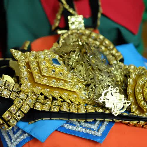 | คำสำคัญ : นายโรง, เครื่องประดับตัวละคร, หัวเข็มขัด, การแสดงพื้นบ้าน, ละครรำ, กรองคอ, กรองคอตัวพระ, สายสังวาลย์, ตัวละครพระ, เข็มขัด, ชาตรี, ทับทรวง, นาฏศิลป์, ละคร, ศิลปะการแสดง, บูรพศิลปินกระทรวงวัฒนธรรม, ละครชาตรี, เครื่องประดับ |