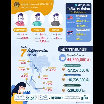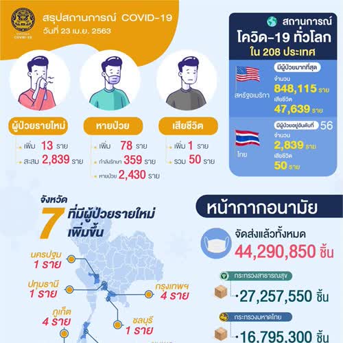 (2563). "สรุปสถานการณ์ COVID-19 วันที่ 23 เม.ย. 2563".