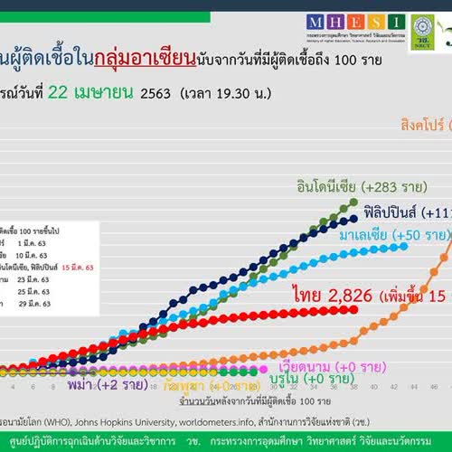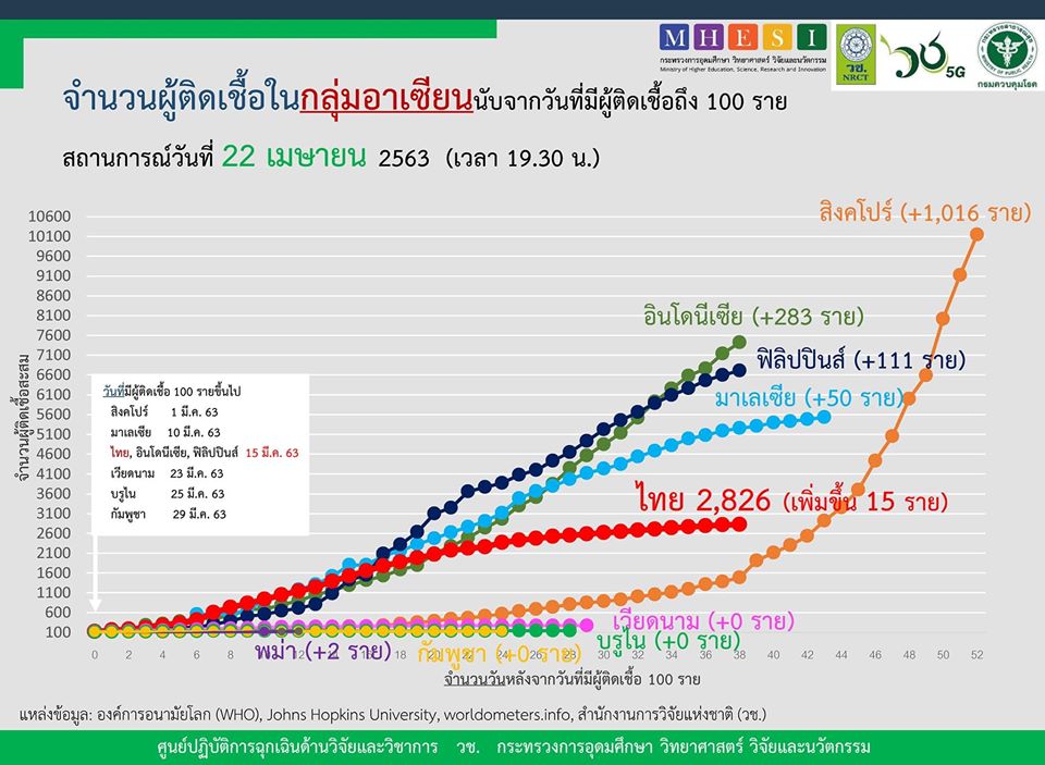 สถานการณ์การติดเชื้อโควิด-19 ในอาเซียน ณ วันที่ 22 เมษายน 2563 เวลา 19.30 น.