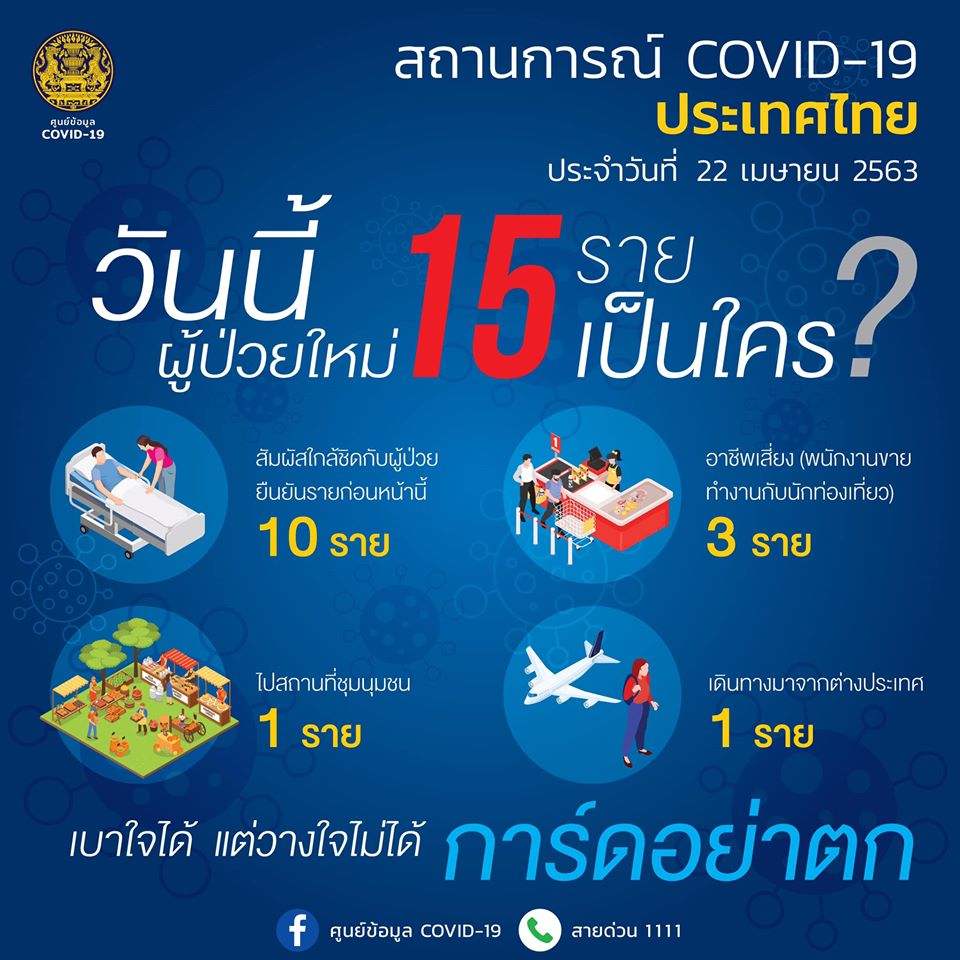 (2563). สถานการณ์ COVID-19 ประเทศไทย ประจำวันที่ 22 เมษายน 2563,