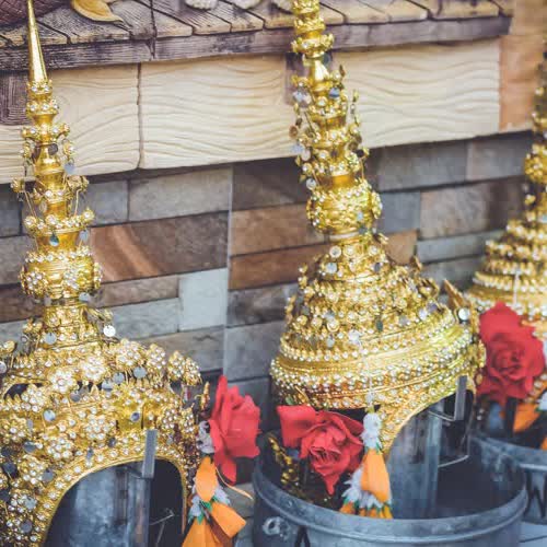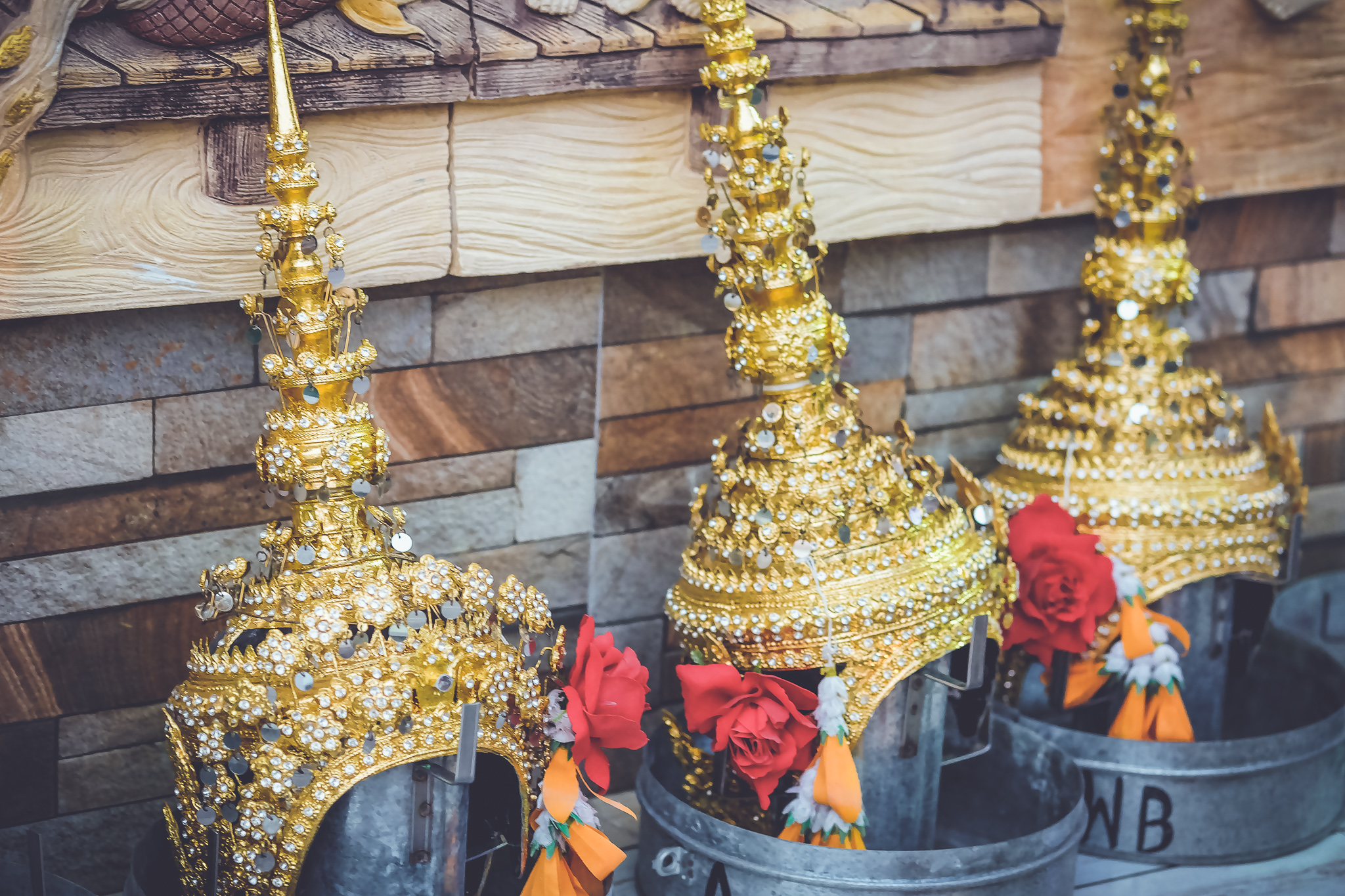 | คำอธิบาย : ยอดละคร (สวมศรีษะก่อนออกแสดง)ยอดมงกุฏ (ละครตัวนางทัดดอกไม้อุบะด้านซ้าย)ยอดชฎา (ละครตัวพระทัดดอกไม้อุบะด้านขวา) |