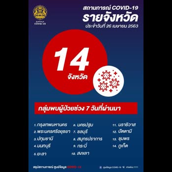 (2563). "58 จังหวัด ไม่พบผู้ป่วย COVID-19 และสถานการณ์ COVID-19 รายจังหวัด ข้อมูล 26 เมษายน 2563".