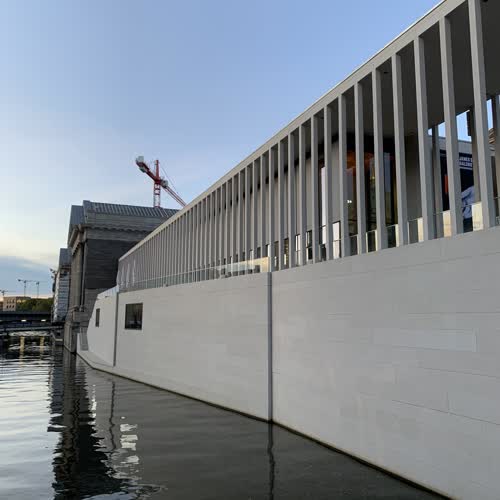 | คำอธิบาย : หอศิลป์เจมส์-ไซมอน พิพิธภัณฑ์เพอร์กามอน กรุงเบอร์ลิน ประเทศเยอรมัน ออกแบบโดยสถาปนิกอังกฤษชื่อดัง เดวิด ชิปเปอร์ฟีลด์ เปิดทำการปี ค.ศ. 2019 หอศิลป์เจมส์-ไซมอนเป็นหอศิลป์ใหม่ที่ถูกออกแบบมาเพื่อทำหน้าที่เป็นทางเข้าที่ทันสมัยสู่พิพิธภัณฑ์เพอร์กามอน และพิพิธภัณฑ์อื่นๆ ที่เชื่อมต่อกันใน "เกาะแห่งพิพิธภัณฑ์" กรุงเบอร์ลิน ประเทศเยอรมัน |