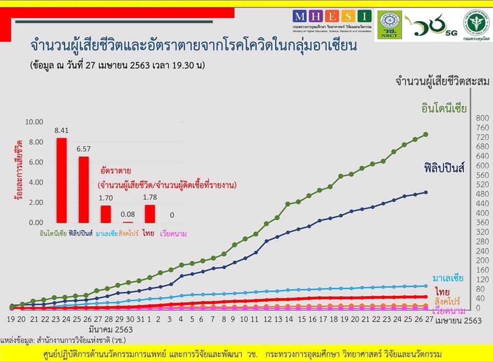 สถานการณ์การติดเชื้อโควิด-19 ในอาเซียน ณ วันที่ 27 เมษายน 2563 เวลา 19.30 น.