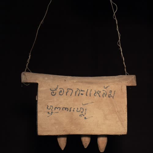 | คำอธิบาย : ฮอกกะแหล้ม ชิ้นแรกทำจากไม้เนื้อแข็ง คว้านเป็นรูตรงกลาง เพื่อใส่แท่งไม้ด้านใด จำนวน 3 แท่ง ที่สามารถทำให้เกิดเสียง ด้านบน เหลือปลายสองข้างไว้ เพื่อเจาะรูให้สามารถร้อยเชือกได้ ส่วนชิ้นที่ 2 มีแต่ตัวที่เป็นฮอก แต่ไม่มีตัวที่ทำให้เกิดเสียง ใช้สำหรับคล้องคอวัว คอควาย |