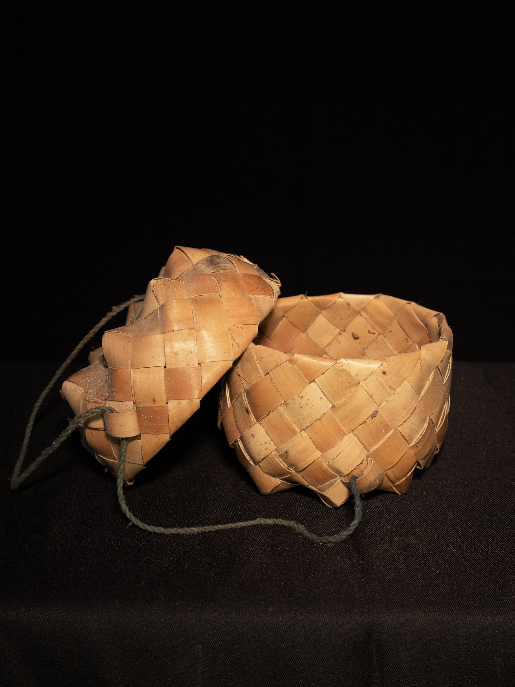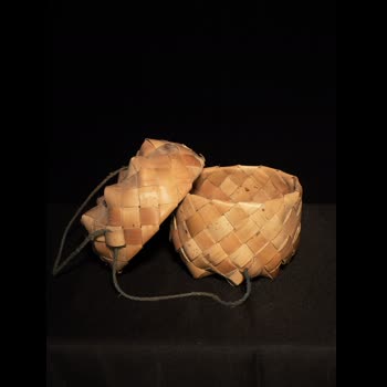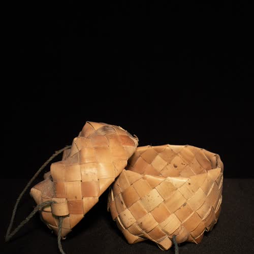 | คำอธิบาย : แอ้บข้าว เป็นเครื่องจักสาน จากใบลาน สานถี่ขึ้นรูปทรงกระบอก ก้นเป็นสี่เหลี่ยม มีฝาปิดที่สานเหมือนกัน แต่กว้างกว่าตัวแอ๊บ เพื่อให้สามารถสวมปิดได้สนิท ก้นมีส่วนที่สามารถร้อยเชือกได้ ส่วนฝา ทำห่วงให้สามารถร้อยเชือกเข้าไปได้ ใช้ใส่ข้าวเหนียวที่นึ่งเสร็จแล้ว |