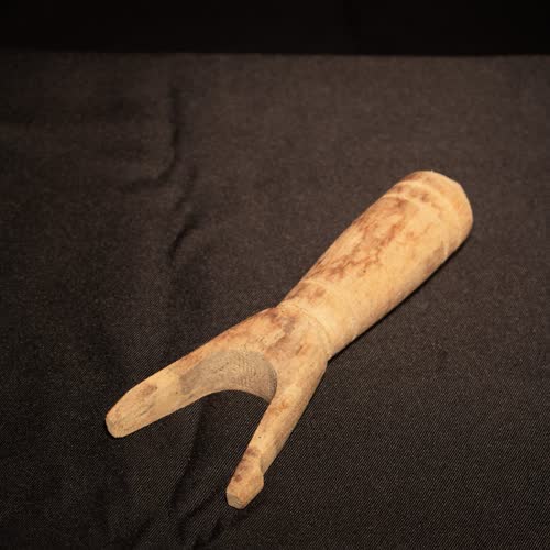 | คำอธิบาย : ก๋ง ทำจากไม้ ทำเป็นง่าม ด้ามจับมีขนาดเหมาะมือ ส่วนงาม มีความยาวประมาณ 5 ซม ปลายงามทำรอยบากไว้เพื่อมัดกับหนัง ใช้ยิงสัตว์ |