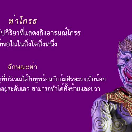 | ชื่อเรื่อง : VDO ท่าการเชิดหุ่น ประกอบบัตรคำ ชุดที่ 3-11 ท่าโกรธ |