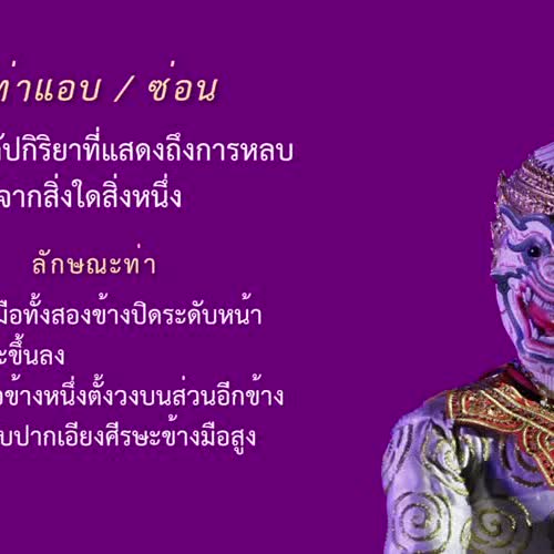 | ชื่อเรื่อง : VDO ท่าการเชิดหุ่น ประกอบบัตรคำ ชุดที่ 3-14 ท่าแอบ ซ่อน |