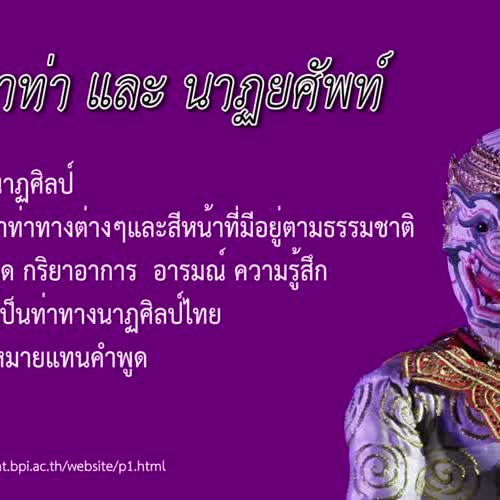 วีดิทัศน์ประกอบบัตรคำ ชุดที่ 3 ภาษาท่า และนาฏยศัพท์ ได้รับใบอนุญาตภายใต้ ให้เผยแพร่-โดยต้องระบุที่มาแต่ห้ามดัดแปลงและห้ามใช้เพื่อการค้า 3.0 Thailand.