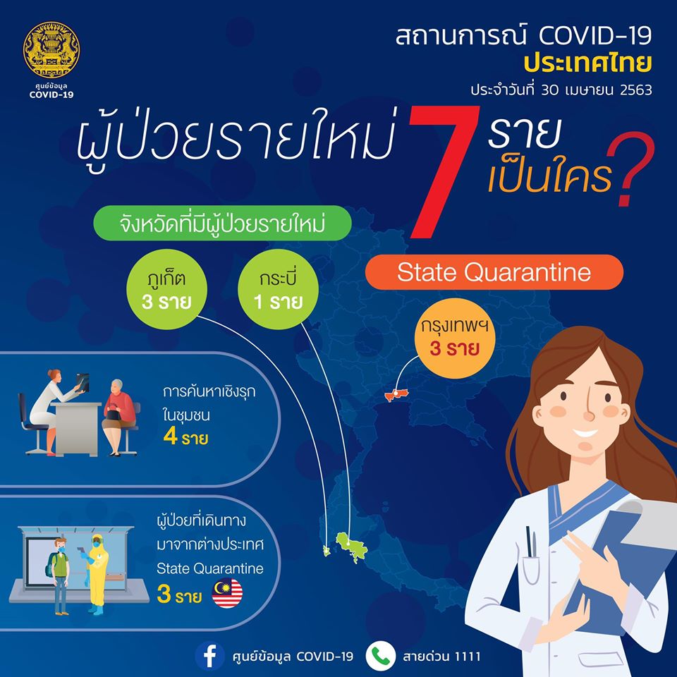"สถานการณ์ COVID-19 ประเทศไทย ประจำวันที่ 30 เมษายน 2563".