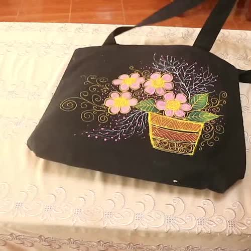 | ชื่อเรื่อง : การเพ้นท์ผ้าด้วยกรวยสี EP.2 แบบที่ 1 ดอกไม้ในกระถาง |