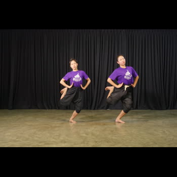 ภาพประกอบบัตรคำ การฝึกท่าพื้นฐานโขน-ละคร (ตัวพระ - ตัวนาง) กระดกเสี้ยว