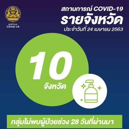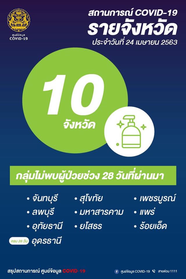 55 จังหวัด ไม่พบผู้ป่วย COVID-19 และสถานการณ์ COVID-19 รายจังหวัด ประจำวันที่ 24 เมษายน 2563