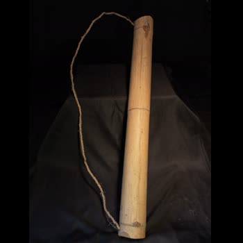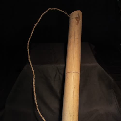 | คำอธิบาย : บอกคอกบั้ง ทำจากไม้ไผ่ 2 ปล้อง ทะลุปล้องกลาเพื่อให้สามารถใส่น้ำได้ในปริมาณที่มากขึ้น มีเชือกร้อยจากปากถึงก้น เพื่อให้สามารถสะพายได้ ใช้ใส่น้ำ เพราะมีบั้งคั่นตรงกลางเลยเรียกกว่า “บอกคอกบั้ง” |